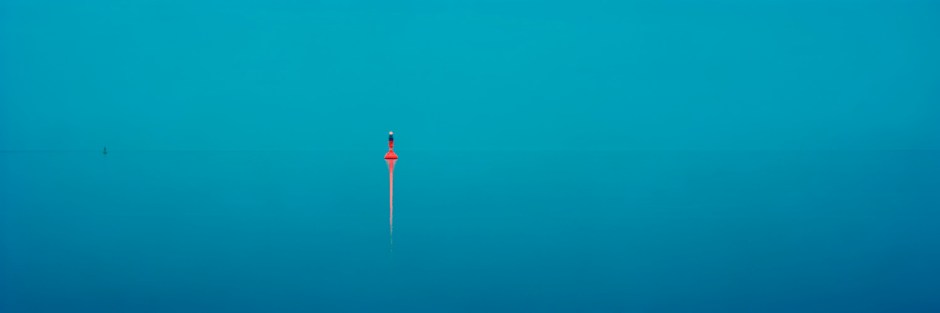 Der Horizont ist kaum noch auszumachen in diesem Panoramabild aus türkisfarbenem Blau. Alles verschwimmt im Hintergrund und gibt dem Orange des Leuchtfeuers, das sich im Wasser spiegelt, seinen großen Auftritt. Kräftige Farben, die die Nordsee an diesem Tag, in diesem speziellen Moment, gemalt hat. Festgehalten 2009 auf Norderney von Deff Westerkamp, der seit vielen Jahren die Meereslandschaften seiner Heimat mit der Panoramakamera portraitiert.