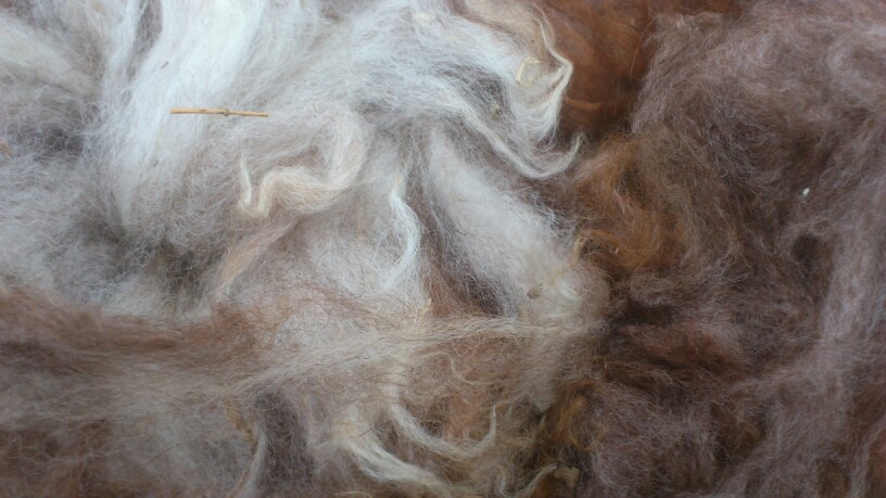 Links sehen wir das geschorene Fell von Aphrodite, einer Alpaka-Stute. Sie liefert schöne braune Wolle. Rechts ist die Wolle von Anubis zu sehen, einem Alpaka-Hengst. Seine Wolle ist sehr viel heller, ein grauer und auch ein rosafarbener Ton zeigen sich in wilder Mischung. Das sind sehr viel seltenere und daher auch wertvollere Farben. Geschoren wurde die Wolle bei beiden bereits im Sommer von Experten der Alpaka-Schur, die eigens aus Amerika anreisten und nach und nach alle Herden Ostfrieslands vor dem Messer hatten. Momentan sieht man keine Tiere draußen. Sie stehen im Stall – nicht wegen der Kälte, die verträgt die Art aus dem Hochland der Anden sehr gut. Es ist eher wegen der Staunässe auf den Wiesen der Marsch, die den kleinen Alpakas aus Peru oder Chile nicht sonderlich gut bekommt.