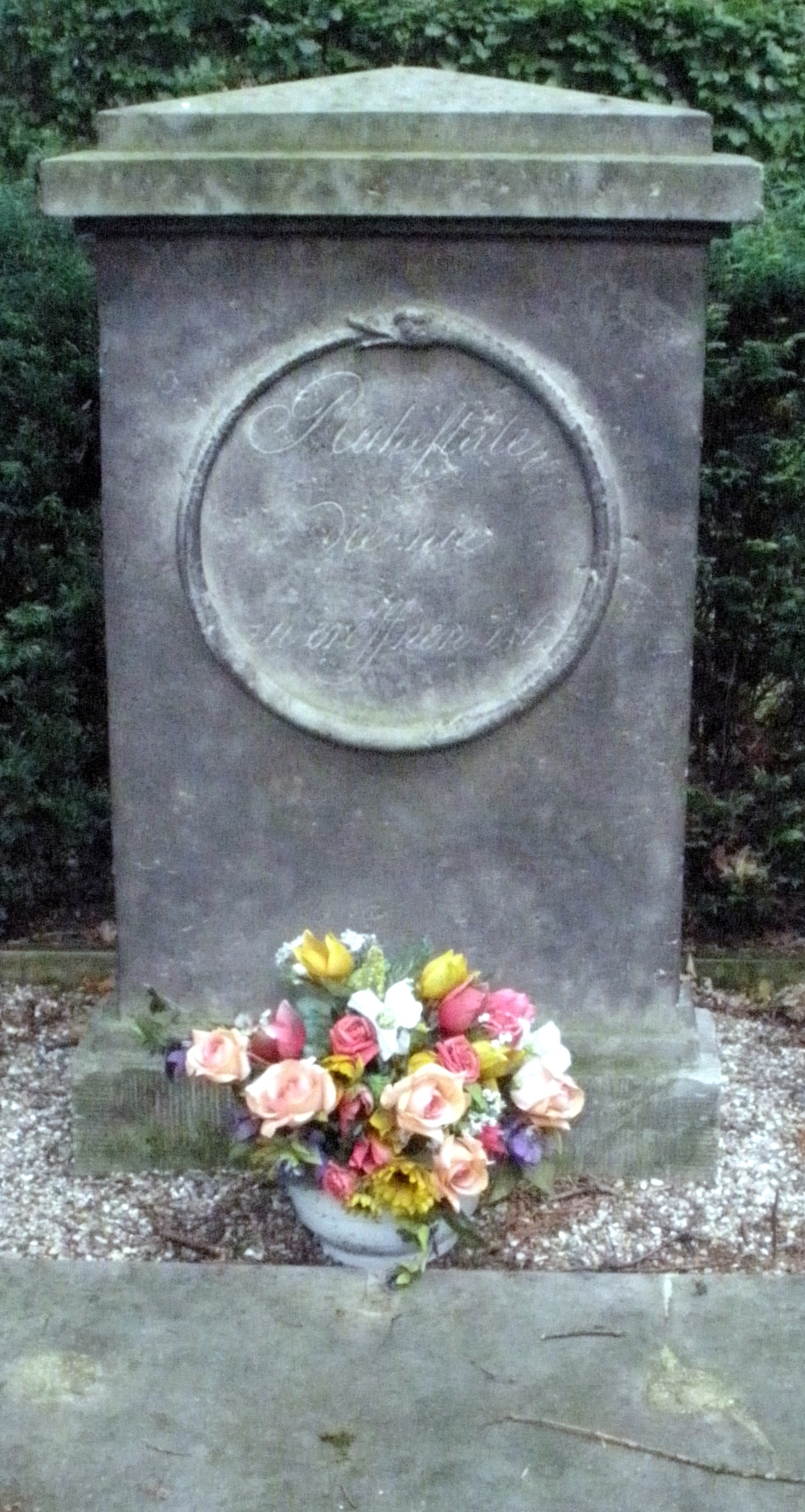 Der Grabstein der Juliane Louise Prinzessin von Ostfriesland befindet sich auf dem Ohlsdorfer Friedhof, Fuhlsbüttler Straße 756, Grab: Bi 56, 577 am Teich.
