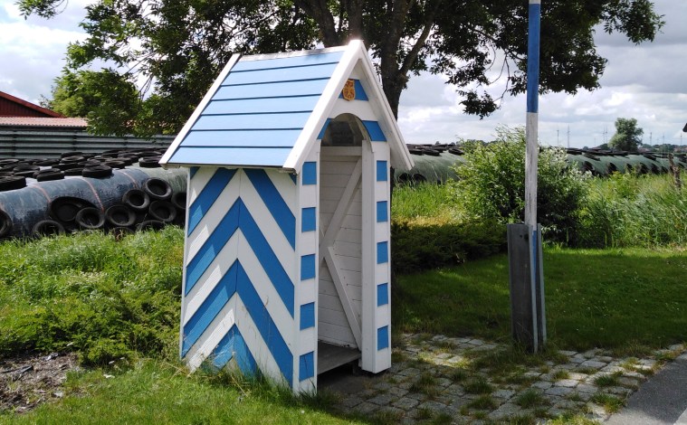 Im Landesinneren hat man sich ein wenig mehr Mühe gemacht in Sachen historischer Erinnerung an die „Goldene Linie“, besonders in Middoge im Wangerland. Denn der idyllische Flecken in der weiten Landschaft ist ein „Grenzort“, wenn auch nur ein ganz kleiner. Seit Anfang der tausender Jahre wird dies auch weithin sichtbar demonstriert: mit einem kleinen blau-weißen Grenzhäuschen am westlichen Ortseingang. Das steht natürlich nur symbolisch dort, und die Schranke ist auch immer offen.