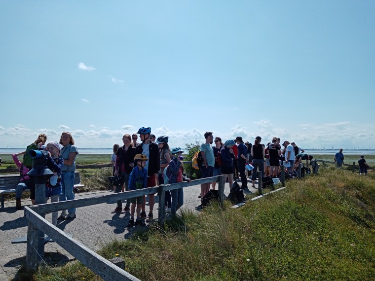 Am Montag fand im Anschluss an die Sprechstunde eine von ihm geführte Tour ganz in den Osten der Insel, ans Osterhook, statt. Und gerade Gestern hatte er von 13 bis 16 Uhr zu einer vogelkundlichen Fahrt mit dem Spektiv eingeladen. Diese Touren waren allesamt gratis und wurden wie letztes Jahr von vielen Besuchern angenommen. „30 bis 40 Leute waren jeweils dabei. Wetter und Stimmung waren super“, berichtet ein gut gelaunter und nach einer Woche unermüdlicher Öffentlichkeitsarbeit im Dienst der Natur leicht erschöpfter Ranger. „Wir konnten sogar einige Ohrenlerchen beobachten“, was die Vogelfreunde gefreut haben dürfte.