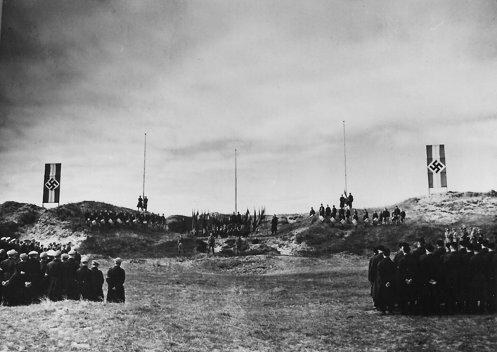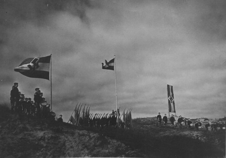 Wenn man von Weitem auf die Szenerie blickt, unterscheidet sie sich abgesehen vom Schwarz-Weiß der Aufnahmen, gar nicht mal so sehr von einem Zeltlager heutiger Tage. In einem weiten Dünental verteilen sich viele weiße Rundzelte im Kreis. In der Mitte befindet sich ein großer Freiplatz mit einer gehissten Fahne: ein typisches Zeltlager. Es unterscheidet sich äußerlich nicht wesentlich von dem, das etwa der Sportbund Niedersachsen aktuell jedes Jahr im Sommer am Fuß der Melkhorndüne für Jugendliche auf Langeoog organisiert. Nur das dieses ein ganz spezielles ist: Es ist das Zeltlager der Hitlerjugend, das die Nationalsozialisten 1936 im Pirolatal der Insel, direkt am Meer, aufgeschlagen hatten. Hier sollte der Nachwuchs geformt werden, ganz im Sinne der Partei-Ideologie.
